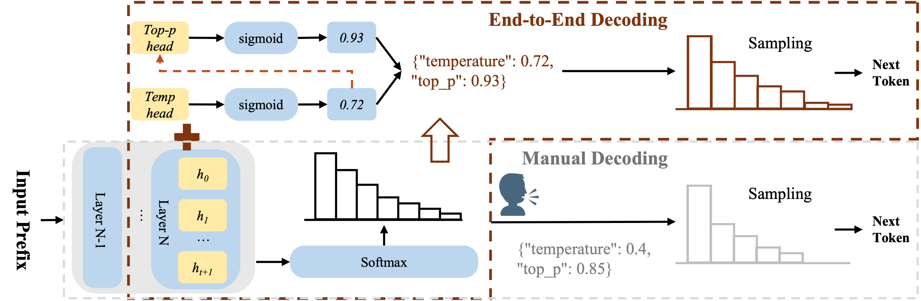 기존 디코딩 한계: LLM은 온도(temperature)나 top-p 같은 하이퍼파라미터를 수동으로 조정해야 해, 진정한 ‘End-to-End’가 아니었음.