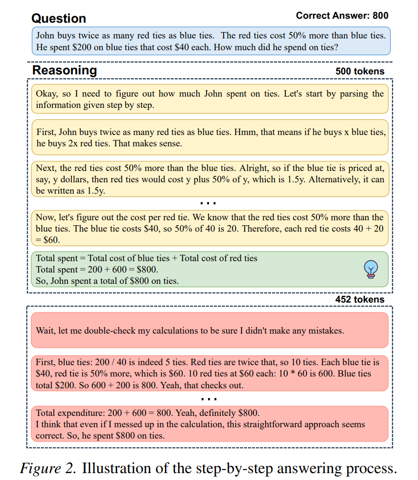생각이 길어질 때의 부작용 : AI가 복잡한 문제를 풀 때 생각하는 과정을 길게 늘리면 성능은 좋아지지만, 불필요한 연산이 늘어나 처리 속도가 느려지고 오히려 정답을 틀리는 부작용이 생김.