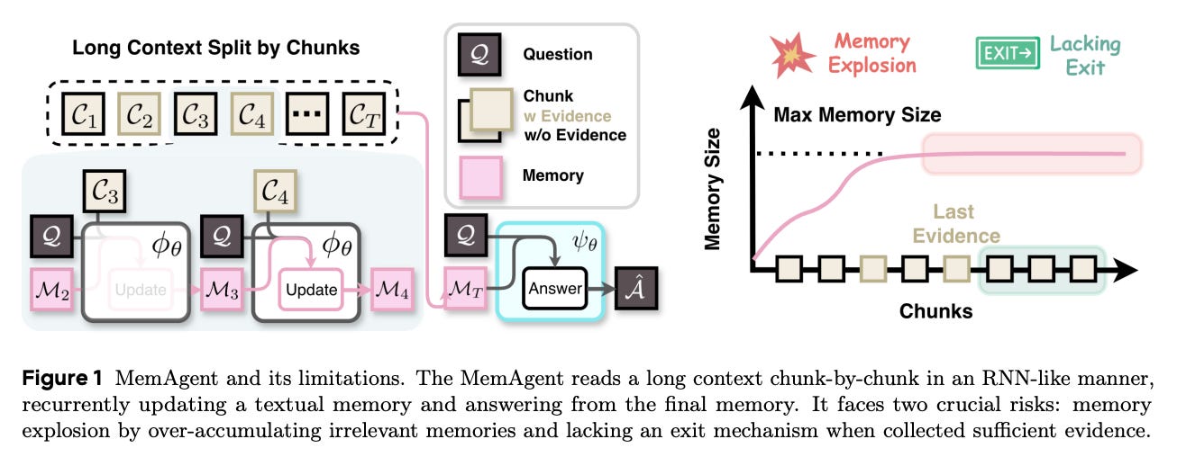 비효율적인 독서 : 기존 AI는 긴 글을 읽을 때 불필요한 정보까지 억지로 기억하려다 과부하가 걸리고, 이미 정답을 찾고도 끝까지 읽느라 시간을 낭비하는 문제가 있었음.