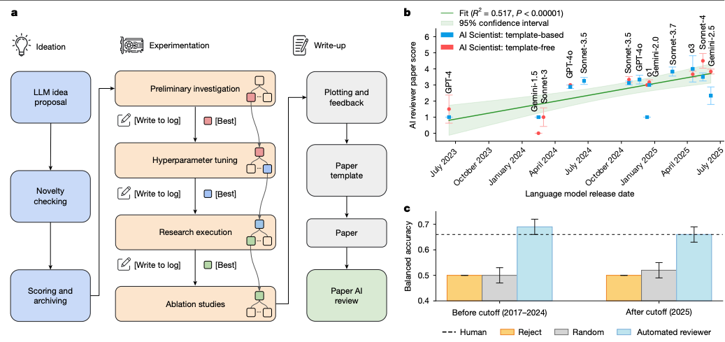 자율적 연구 성과 입증 : 생성된 결과물이 실제 학술대회 심사 기준을 통과하며 인공지능 주도의 독자적인 과학적 기여 가능성을 확인함.
