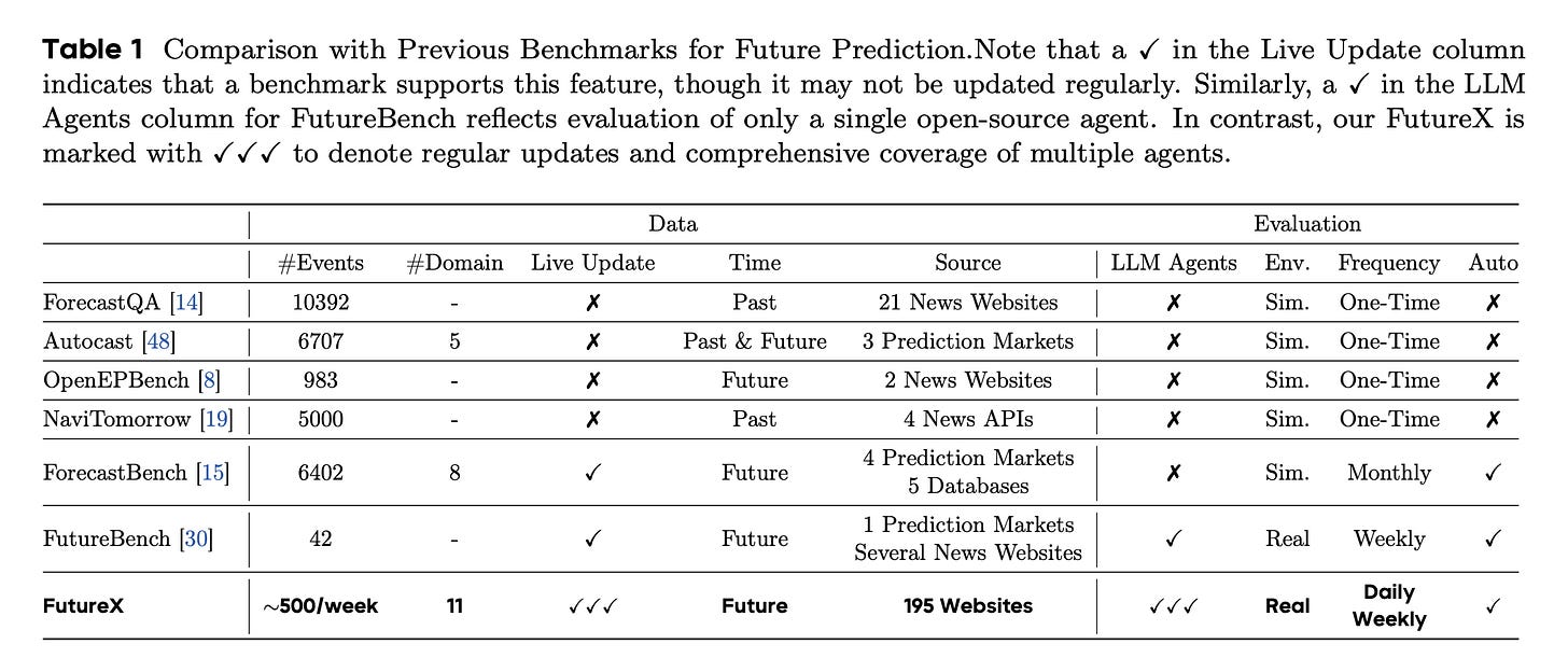 - b미래 예측 벤치마크 : LLM 에이전트의 핵심 능력인 미래 예측 성능을 평가할 대규모 벤치마크가 없는 문제를 해결하고자, 실시간 동적 벤치마크 '퓨처X(FutureX)'를 개발함.