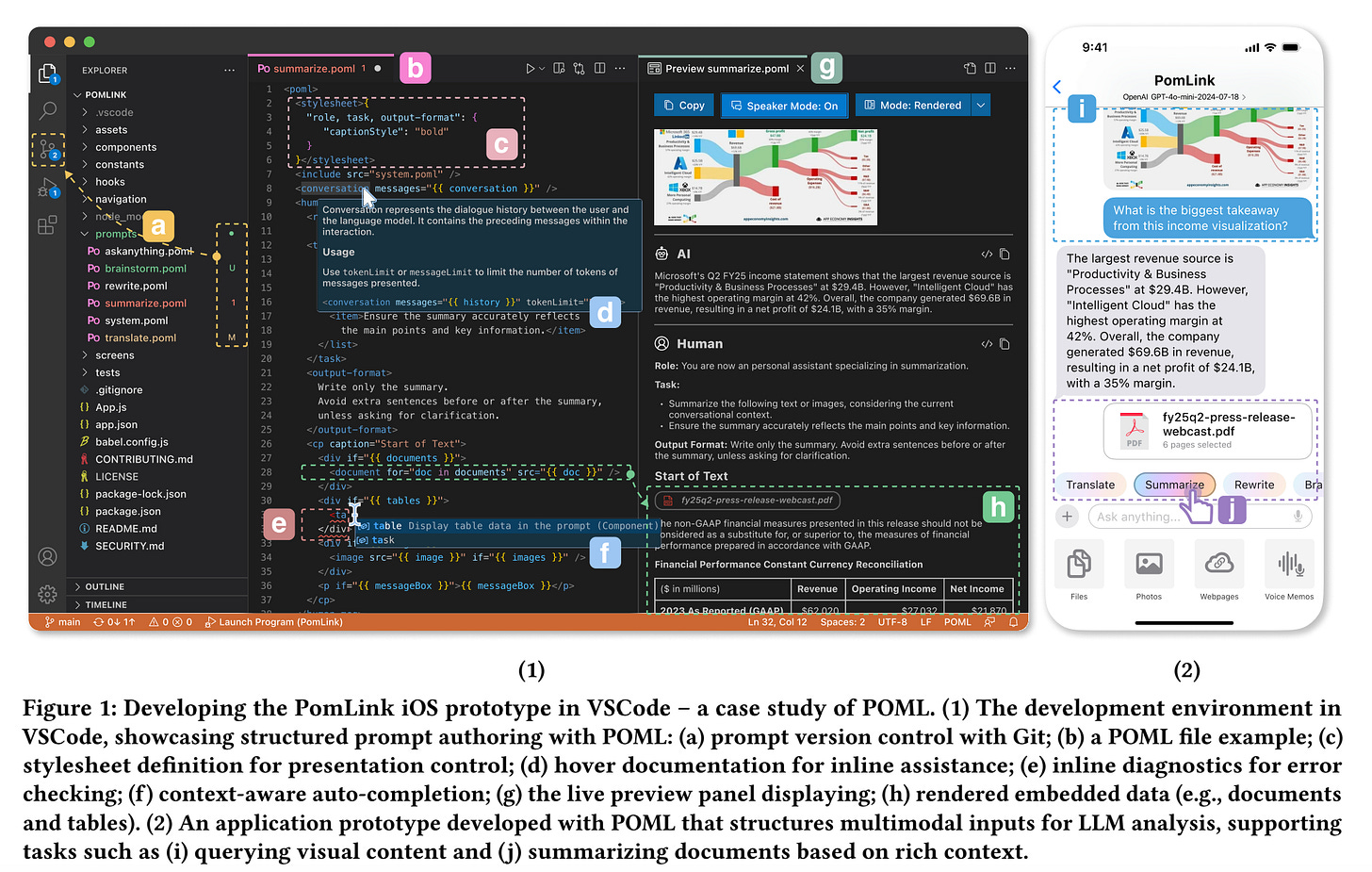 - 체계적인 프롬프트 관리 : 복잡한 LLM 프롬프트의 구조화, 데이터 통합, 형식 민감성 문제를 해결하기 위해 새로운 마크업 언어 'POML(Prompt Orchestration Markup Language)'을 제안함.
